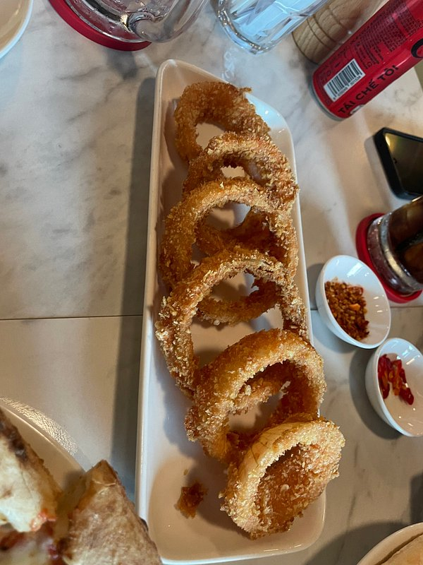 사이드 메뉴로는 바삭한 양파링이 있어요.