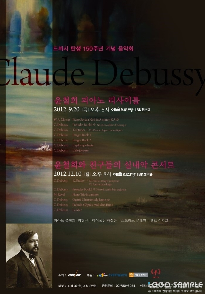 프랑스의 인상주의 작곡가 드뷔시 탄생 150주년을 맞이하여 피아니스트 윤철희와 연주로 드뷔시의 피아노 주요 작품과 실내약 작품들을 집중 조명해보는 시간을 갖습니다. 이분 유명하죠.. 항상 못갔는데 이번엔 꼭 가려고 해요