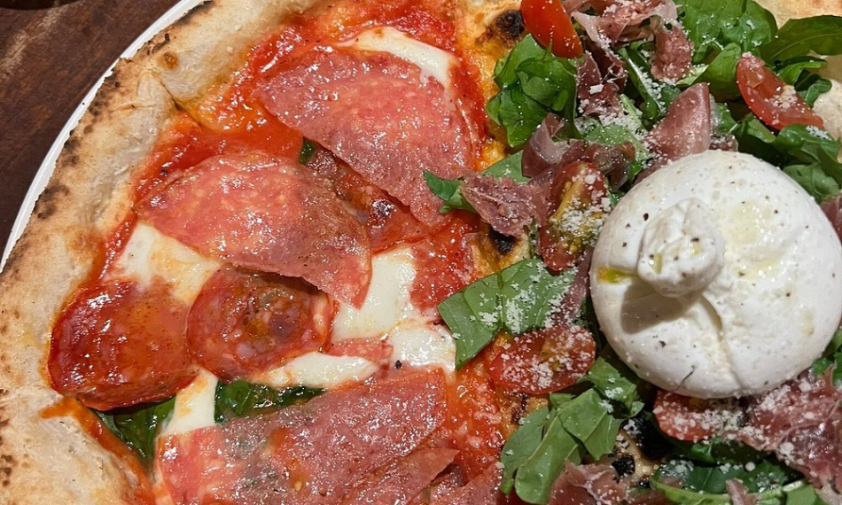 사진 속에서도 보듯 푸짐한 루꼴라와 신선한 베이컨, 방울토마토가 조화를 이루며, 중앙에 올라간 부드러운 부라타 치즈가 입안에서 산뜻하고 고소한 맛을 더해줍니다. 피자의 바삭하면서도 촉촉한 도우는 먹을때 마다 고소한 밀향과 치즈의 깊은 풍미가 퍼져 진정한 이탈리아 현지의 맛을 경험할 수 있습니다.
