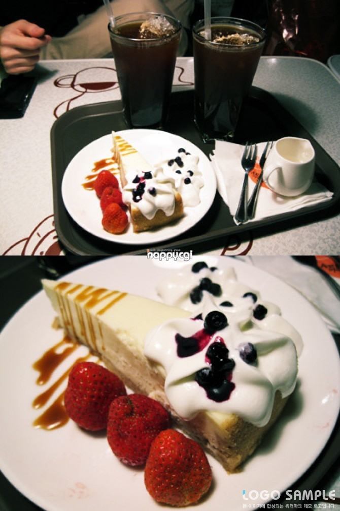 아는 사람은 다 아는 찰떡 궁합! 진한 치즈케익과 위에 휘핑크림을 얹고 몸에 좋은 블루베리까지>_< 보기만해도 입안에서 사르르 녹죠? 곁들여진 딸기는...........천국이 이곳이다 라는 생각이 든답니다. 사람은역시 먹을때가 제일 행복한가봐요 혼자만 또 드시지 마시고 여러명이서 같이 먹는걸 강추합니다