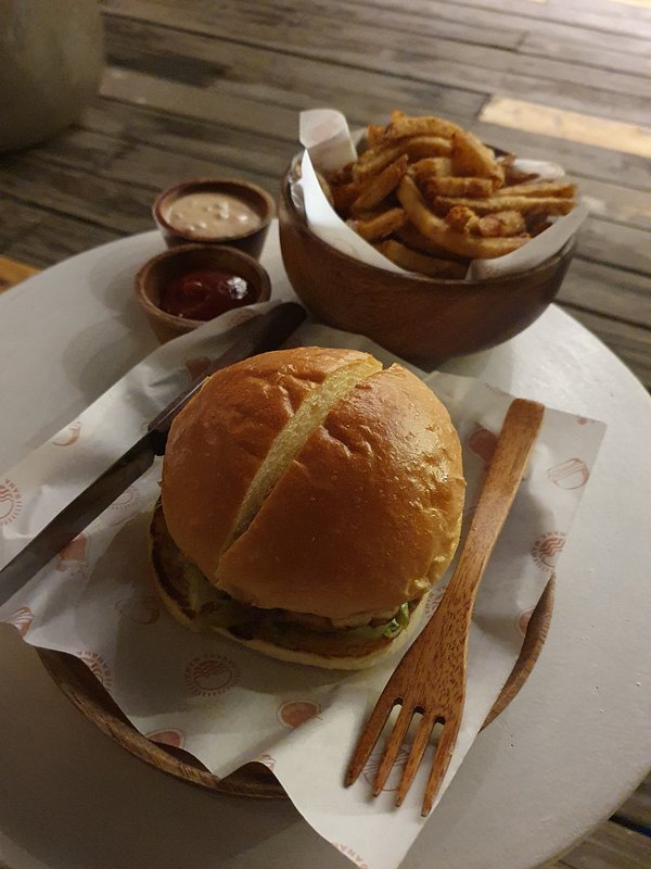 ๋ฐ”์‚ญํ•œ ์ปค๋ฆฌ ํ›„๋ผ์ด์™€ ํ•จ๊ป˜ ๋‚˜์˜ค๋Š” ์ด ๋ฒ„๊ฑฐ๋Š”, ์‹ ์„ ํ•œ ์žฌ๋ฃŒ๋กœ ๋งŒ๋“ค์–ด์ ธ์„œ ํ•œ ์ž… ๋จน๋Š” ์ˆœ๊ฐ„ ํ–‰๋ณต์ด ๋ฐ€๋ ค์™”์–ด์š”.