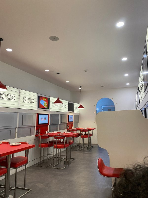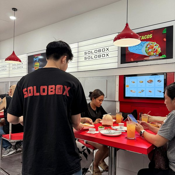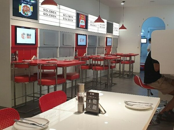 SOLOBOX의 분위기는 정말 아늑하고 편안한 느낌이었어요. 모던한 인테리어와 함께 디지털 화면에서 메뉴를 확인할 수 있어요. 여기서 친구들과 함께 즐거운 시간을 보내기 딱 좋은 곳이에요.