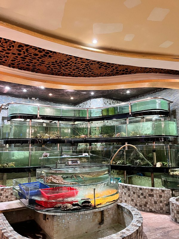 특히, 중앙에 있는 큰 수조에는 커다란 게들이 있어서 시선을 사로잡았답니다. 이곳의 해산물은 모두 살아있는 상태로 제공되기 때문에, 신선함이 남다른 것 같아요!