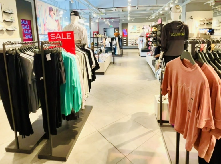제가 방문했을 때는 마침 세일 중이라 더욱 기대가 되었는데요. 입구가 화려하게 꾸며져 있어 쇼핑 분위기를 제대로 느낄 수 있었고, 웰컴 마네킹이 반겨주니 흥겨운 기분으로 들어갈 수 있었습니다.