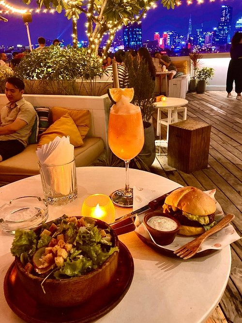호치민 살면서 여기저기 다녀봤지만, 이곳은 정말 친구들이랑 모임하기 딱 좋은 곳이에요. 처음 간 건 2022년쯤이었는데, 그때 이후로도 종종 약속 장소로 여기로 잡습니다. 가족이나 연인이랑 와도 좋지만, 솔직히 여자 친구들이랑 같이 가면 제일 신나요. 음악이 워낙 활기차서 수다 떨다가도 저절로 흥이 올라오거든요. 분위기가 조금 이국적인 느낌이에요. 바닷가를 연상시키는 인테리어에다가 DJ가 라틴이나 하우스 음악을 틀어주는데, 그 덕분에 금요일 밤이나 주말 저녁에 가면 파티 분위기 제대로 납니다. 앉아서 이야기하다가도 음악에 맞춰 살짝 몸이 들썩여지고, 다른 테이블도 다들 즐겁게 놀고 있어서 덩달아 기분이 업돼요. 음식은 생각보다 훨씬 괜찮아요. 사실 이런 분위기 위주인 곳은 음식은 그냥저냥일 거라 생각했는데, 여긴 요리도 신경을 많이 쓰는 것 같아요. 술이랑 같이 곁들이기 좋은 메뉴들이 많고, 양도 적당해서 친구들이랑 이것저것 시켜서 나눠 먹기 좋아요. 직원분들도 항상 밝고 친절해서 필요한 거 말하면 금방 가져다 주시고, 테이블 분위기를 깨지 않으면서 자연스럽게 챙겨주는 게 마음에 들어요. 가격대는 1인당 20만~30만 동 정도인데, 음식 퀄리티랑 분위기를 생각하면 전혀 아깝지 않아요. 특히 야외 자리에서 보는 사이공 야경은 진짜 예쁩니다. 친구들이랑 사진도 많이 찍고, 분위기에 취해서 밤늦게까지 수다 떨다 보면 시간이 훌쩍 지나가더라구요. 정리하자면, 데이트보다는 솔직히 여자 친구들이랑 모여서 놀기 좋은 곳이에요. 분위기, 음악, 음식, 뷰 다 빠지는 게 없어서 한 번 가면 다들 또 오자고 할 만큼 만족도가 높습니다. 그래서인지 저희 모임 장소는 거의 항상 여기로 굳어졌어요. 호치민에서 신나게 놀고 싶을 때 강추합니다!