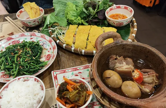 건물은 2층 구조로 꽤 널찍하고 실내가 쾌적해요. 입구부터 깔끔하고 세련된 인테리어라 “관광객이 좋아할 만한 고급 베트남 음식점”이라는 인상이 들었고, 에어컨도 잘 돼 있어서 더위 피하기 좋았어요. 사람들이 말하길 “조용하고 안락한 분위기”라는 후기가 많더라고요. 그리고 메뉴가 다양해요. 일반 베트남...