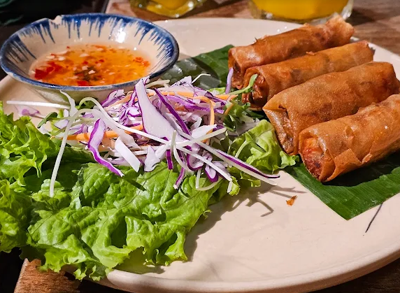 음식도 전반적으로 훌륭했어요. 특히 반쎄오와 새우 요리가 인상 깊었고, 바삭한 스프링롤도 현지 스타일로 즐길 수 있어 좋았습니다.