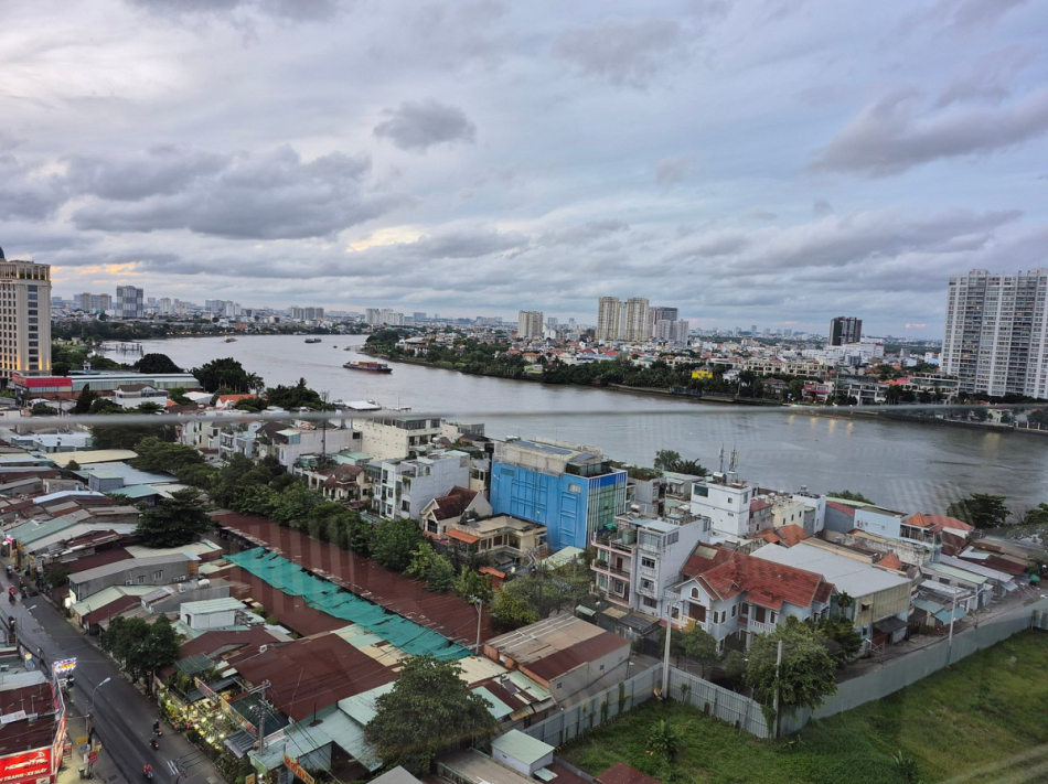 객실 문을 여는 순간 가장 먼저 시선을 사로잡은 것은, 넓은 창을 통해 한눈에 들어오는 두 개의 압도적인 전망이었습니다. 한쪽은 고요한 사이공 강(Saigon River), 다른 한쪽은 베트남에서 가장 높은 빌딩인 **랜드마크 81(Landmark 81)**이 우뚝 솟아 있어, 마치 두 개의 세계 사이에서 머무는 듯한 느낌이었어요.