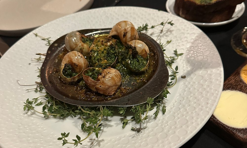 제가 주문한 전채 요리인 에스카르고(달팽이 요리)는 버터와 허브 향이 잘 어우러져 매번 먹어도 질리지 않을 맛이었습니다.
