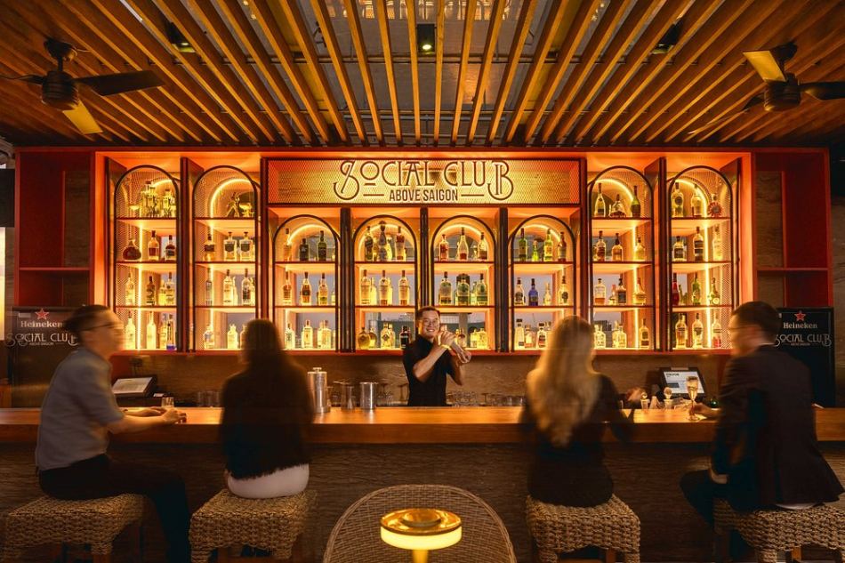 ํธ์น๋ฏผ์์ ์ธ๋ จ๋ ๋ถ์๊ธฐ์ ํ ํธ์ธ ์ ๋ง์ ๋์์ ์ฆ๊ธฐ๊ณ ์ถ๋ค๋ฉด, Social Club Rooftop Bar๋ฅผ ๊ผญ ์ถ์ฒํฉ๋๋ค. ๋จผ์ ์ด๊ณณ์ **๋ทฐ(View)**๋ ๋จ์ฐ ์ต๊ณ ์ ๋๋ค. ๋์ฌ ํ๊ฐ์ด๋ฐ ์์นํด ์์ด ๋ฃจํํ์ ์ฌ๋ผ์๋ ์๊ฐ, ์ฌ์ด๊ณต์ ์ค์นด์ด๋ผ์ธ์ด ํ๋์ ๋ค์ด์ค๋๋ฐ, ์ ๋ ๋ ธ์๊ณผ ํจ๊ป ๋์ฌ์ ๋ถ๋น์ด ์ผ์ง๋ ์๊ฐ๋์๋ ๊ทธ์ผ๋ง๋ก ๊ทธ๋ฆผ ๊ฐ์ ํ๊ฒฝ์ ๊ฐ์ํ ์ ์์ต๋๋ค.