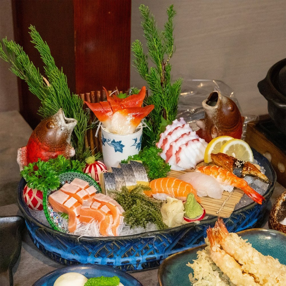 그리고 스시 플래터도 빼놓을 수 없죠! 연어, 새우, 문어 등 다양한 스시가 가득해요. 각각의 스시는 신선함이 느껴져서 정말 맛있었어요.