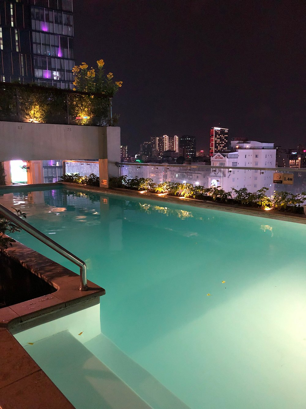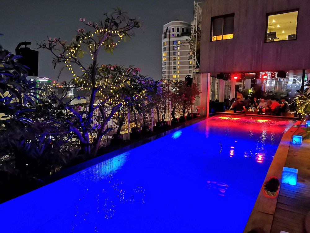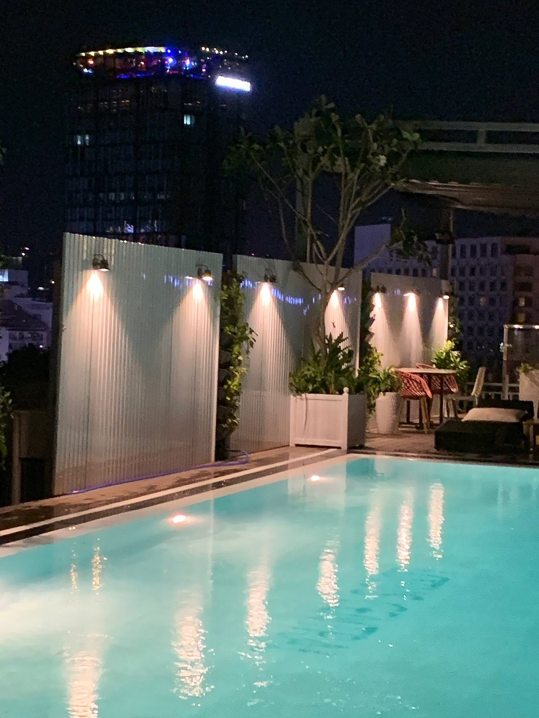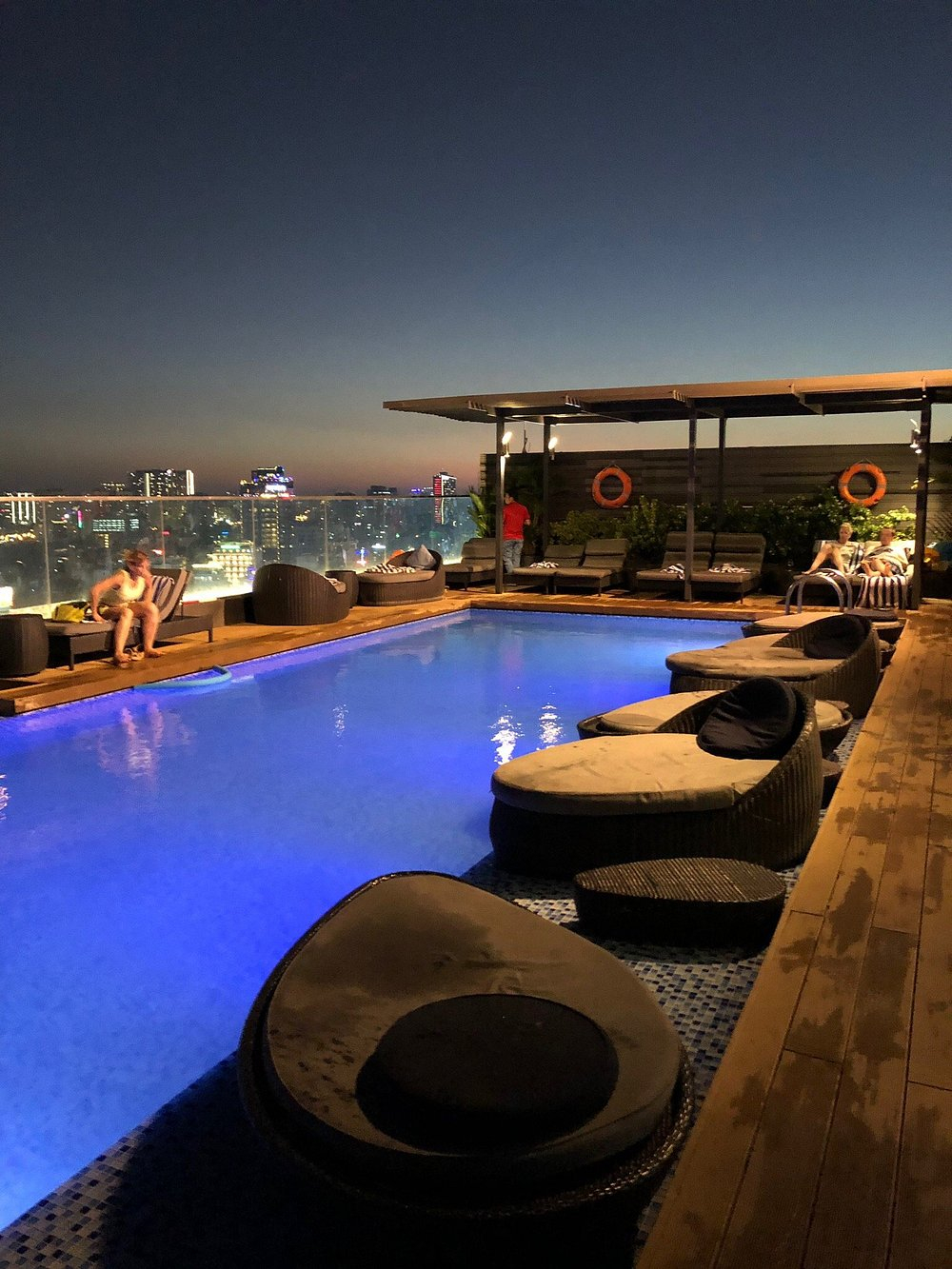 밤에는 도심 야경을 바라보며 수영을 즐길 수 있었고, 옆에는 루프탑 바가 있어 칵테일 한 잔과 함께 분위기를 만끽했습니다.