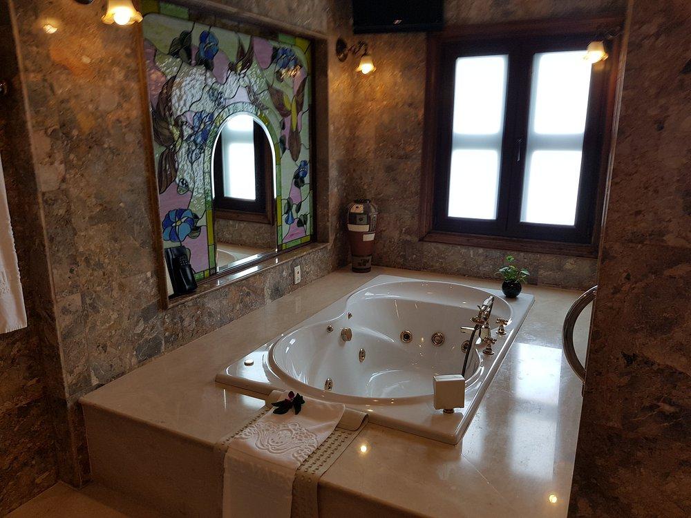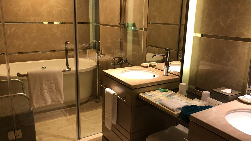 욕실은 대리석 마감에 세면대, 욕조, 샤워부스가 모두 분리되어 있어 쾌적했습니다.