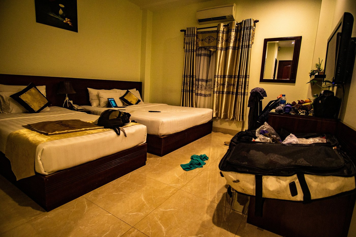 방은 솔직히 작아요. 캐리어 두 개 펼치면 꽤 공간이 꽉 찹니다.