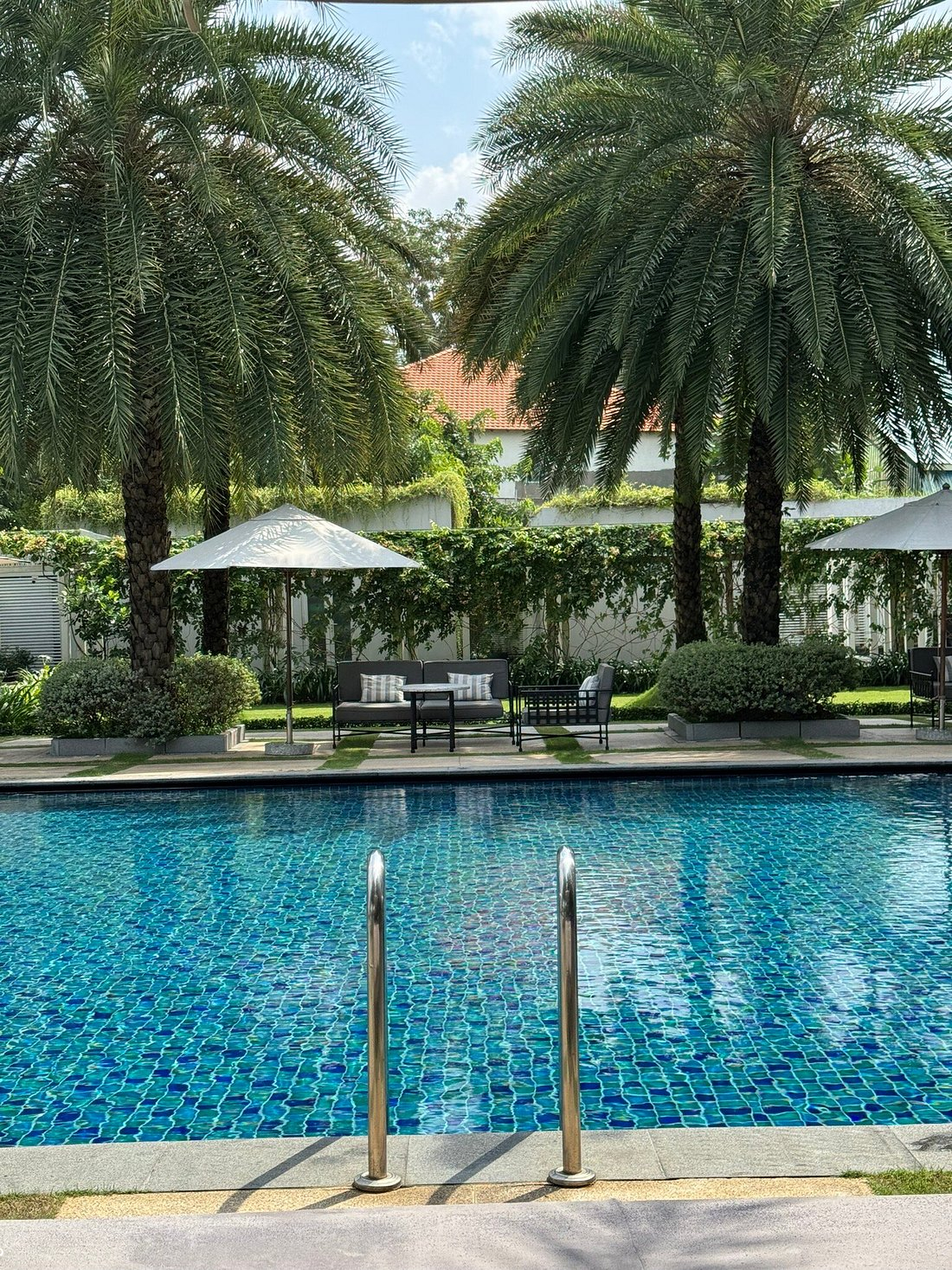 수영장은 더운 날씨에 이용하기 딱 좋았습니다. 물도 깨끗했고 분위기도 좋았는데, 선베드가 10개 남짓밖에 없어서 사람이 많으면 금방 자리가 찰 것 같더군요. 그 부분은 조금 아쉬웠습니다. 그래도 시설 관리가 잘 돼 있어서 수영하고 쉬기엔 충분했습니다.